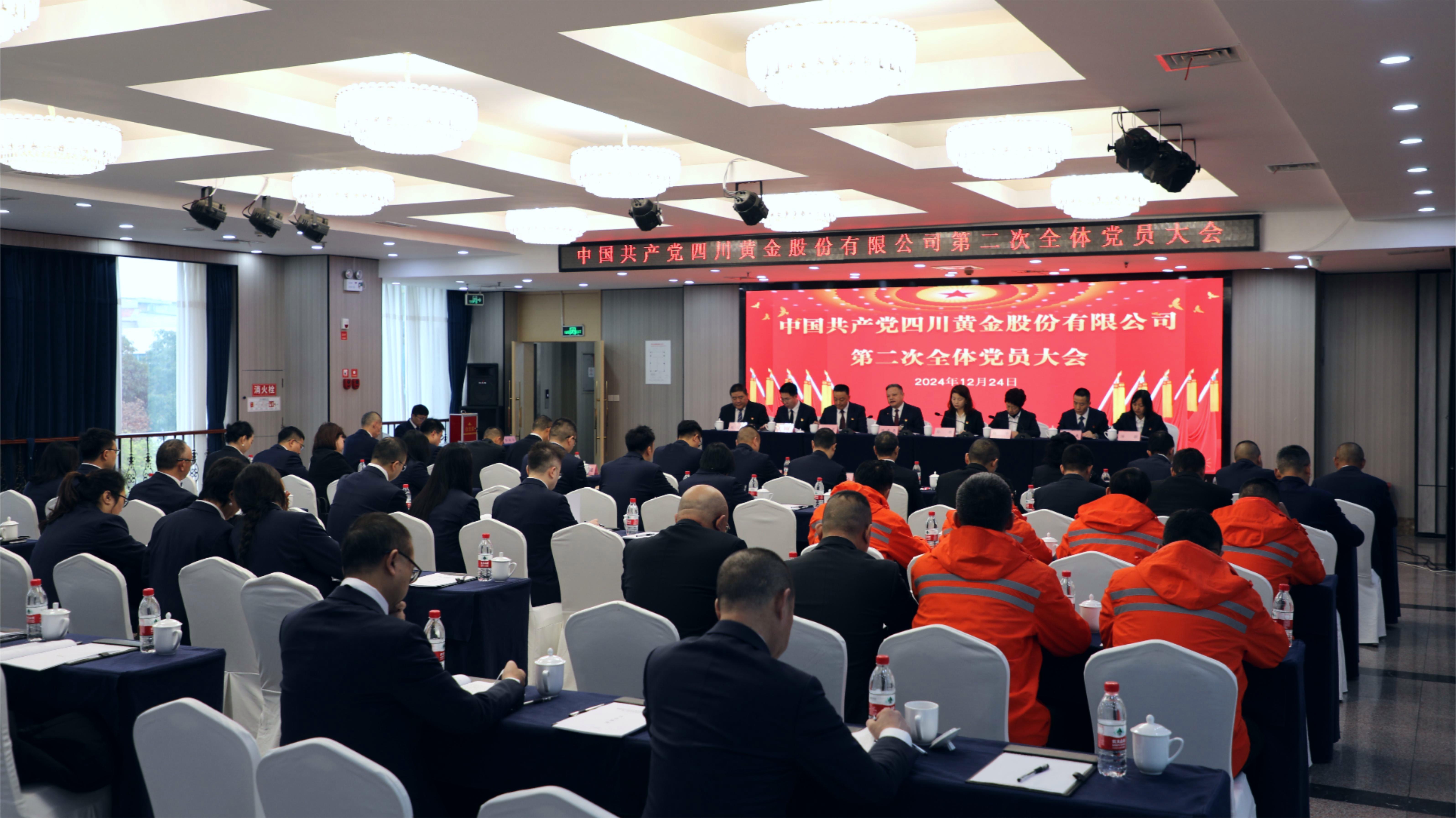 2024年12月24日,中國共產(chǎn)黨四川黃金股份有限公司第二次全體黨員大會在成都召開。會議由公司黨委副書記、副董事長、總經(jīng)理吳安東主持,區(qū)調(diào)隊黨委副書記孫瑕,紀(jì)委書記、工會主席楊華到會指導(dǎo)。