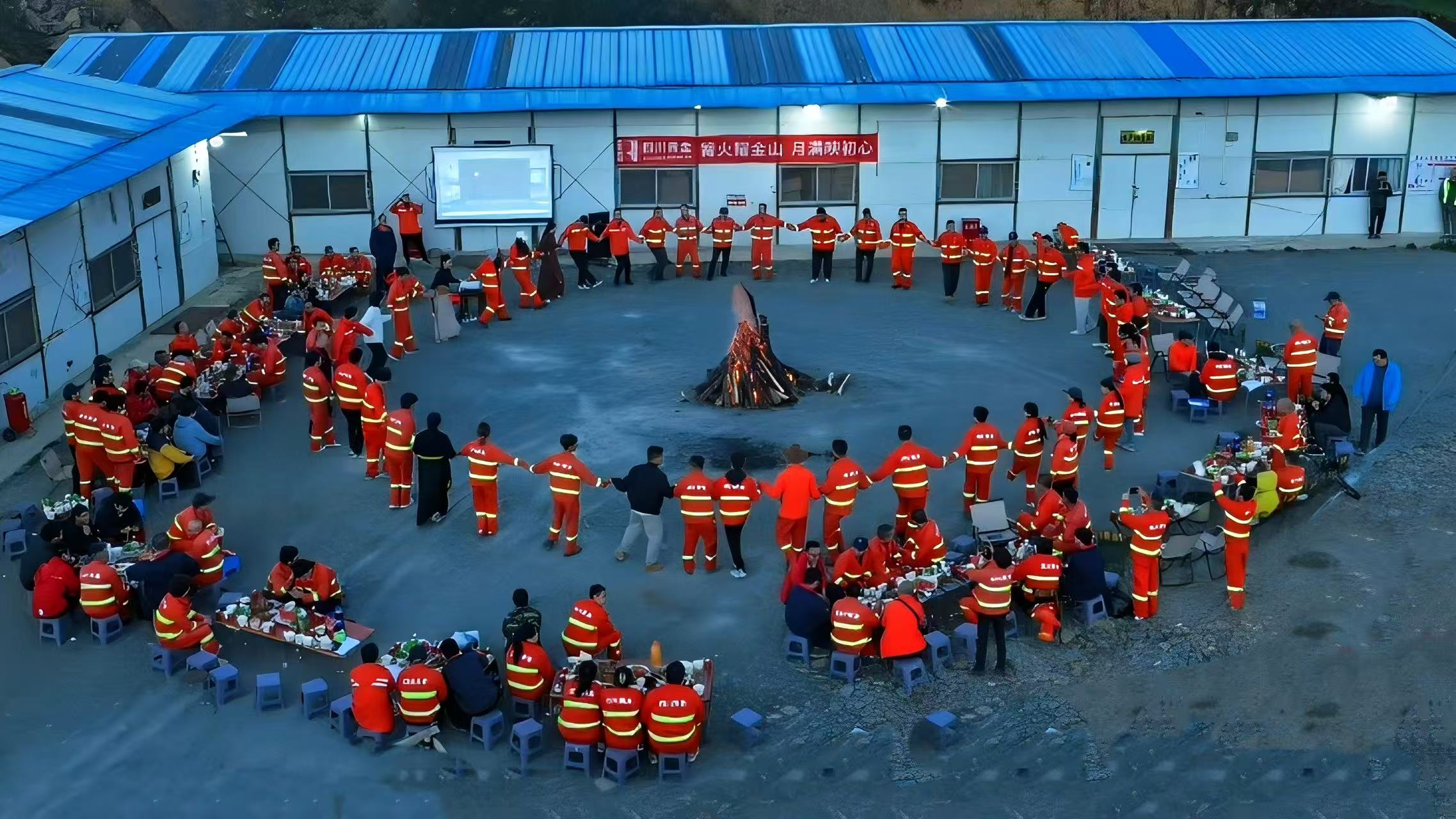 晚會(huì)伊始公司副總經(jīng)理、總工程師劉立輝,梭羅溝金礦礦長彭剛先后向堅(jiān)守在一線崗位、辛勤勞作的全體員工致以誠摯的敬意和節(jié)日的問候,對他們?yōu)楣景l(fā)展所作出的貢獻(xiàn)予以充分肯定,就做好企業(yè)和個(gè)人安全工作作了溫馨提示。 在隨后的篝火晚會(huì)中,歌曲、舞蹈等節(jié)目接連上演,現(xiàn)場氣氛熱烈,掌聲不斷?!靶挠徐`犀”互動(dòng)游戲增進(jìn)了團(tuán)隊(duì)之間的默契與協(xié)作;“鍋莊舞”將大家團(tuán)聚在一起,手拉著手歡快舞動(dòng),在一片歡聲笑語中展現(xiàn)出四川黃金人團(tuán)結(jié)奮進(jìn)、積極向上的精神風(fēng)貌。 此次晚會(huì)不僅是一次節(jié)日的歡慶,更是四川黃金系統(tǒng)構(gòu)建企業(yè)文化生態(tài)的一次生動(dòng)實(shí)踐。在雪域高原的特殊工作環(huán)境下,公司積極統(tǒng)籌部署文化活動(dòng)、精準(zhǔn)對接一線需求,將企業(yè)對員工的關(guān)懷從“物質(zhì)保障”延伸至“精神滋養(yǎng)”,力爭為四川黃金推進(jìn)科技提質(zhì)、筑牢安全防線、實(shí)現(xiàn)高質(zhì)量發(fā)展注入源源不斷的溫情力量與奮進(jìn)動(dòng)能。