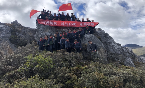 本次徒步登山競(jìng)賽活動(dòng)地點(diǎn)選擇在礦區(qū)以西灰?guī)r山,終點(diǎn)海拔近4500米。在這山高、路陡、叢林險(xiǎn)峻的攀爬過(guò)程中,大家相互攙扶、相互幫助、相互鼓勵(lì),充分發(fā)揚(yáng)了“容大人”團(tuán)結(jié)拼搏、不畏艱險(xiǎn)的優(yōu)良作風(fēng)。競(jìng)賽經(jīng)過(guò)一個(gè)多小時(shí)激烈的角逐,山頂裁判傳來(lái)捷報(bào):綜合辦員工伍馬馬率先登上終點(diǎn),選礦廠女員工姜霞“巾幗不讓須眉”緊隨其后登頂成功,各隊(duì)隊(duì)員也陸續(xù)抵達(dá)終點(diǎn)。最先到達(dá)終點(diǎn)的前三名分獲一二三等獎(jiǎng),大家一致推薦把“最佳精神獎(jiǎng)”頒給55歲的彭玉洪。每位同事經(jīng)歷這一場(chǎng)高原競(jìng)賽,雖然氣喘吁吁、精疲力竭,但都充滿了到達(dá)終點(diǎn)、成功挑戰(zhàn)自我的喜悅。大家聚坐在山頂,共贊祖國(guó)河山,共頌祖國(guó)母親。